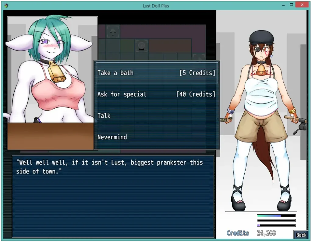 Lust Doll Plus is set in a post-apocalyptic semi-modern/future world, where you start alone and confused in a dangerous place, with literally nothing (not even clothes on your back), and go on to carve out a piece of the world for yourself. There’ll be a main storyline to follow, but the emphasis is on it being an open world game where you just screw around and have fun.